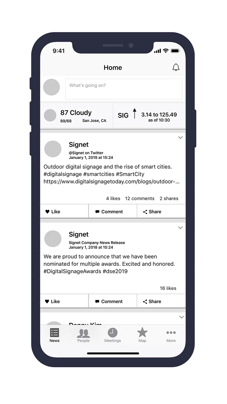 Conducted research and delivered wireframes for a social newsfeed feature enhancement for a workplace wayfinding app. The purpose of this feature is to encourage employees to have more conversations around company internal communications material and ultimately boost employee engagement.